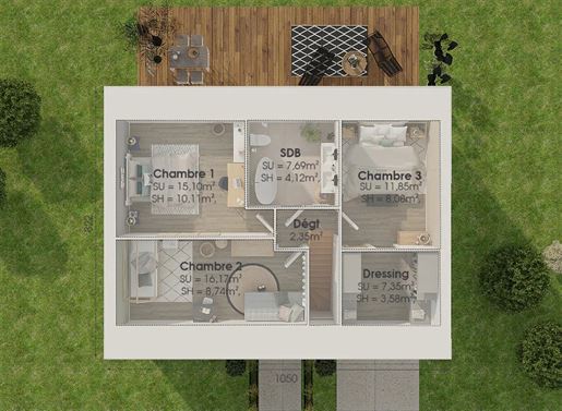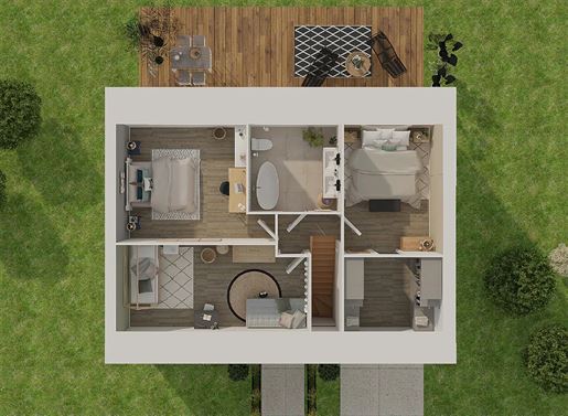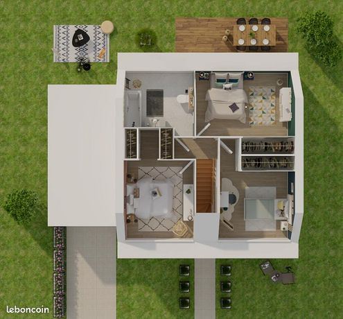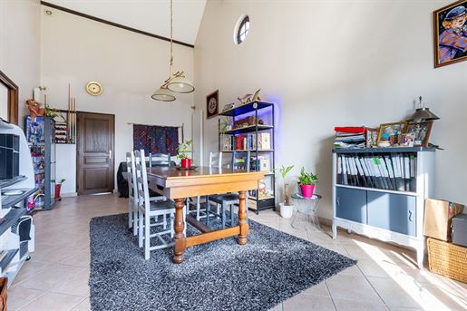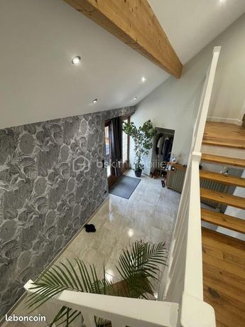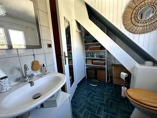 - au rez-de-chaussée : une entrée avec placard, une cuisine aménagée et semi équipée, un Wc avec lave-mains, un double séjour lumineux de plus de 70m2 avec plafond cathédrale sur une partie (possibilité de créer une mezzanine) un poêle à bois et un accès direct à une grande véranda exposée plein sud, une suite parentale avec dressing et salle d'eau/WC/placard, accès direct à la terrasse à l'arrière de la maison
