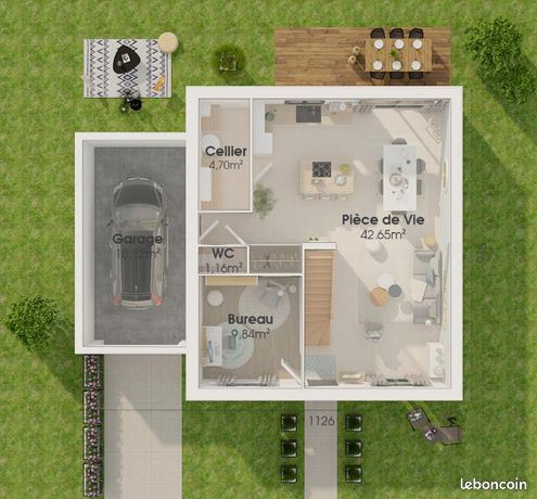 - au sous-sol un garage, une buanderie/chaufferie avec Wc, une pièce avec fenêtre, isolée et chauffée pouvant devenir un bureau ou chambre d'appoint.
