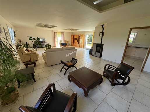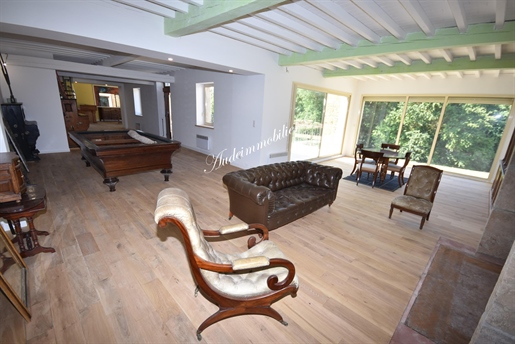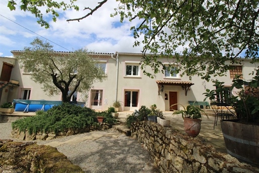 Située dans un hameau à proximité du village de Fanjeaux, village avec commerces et services et à une heure de Toulouse et de son aéroport international, propriété composée d'une maison principale, d'un gîte de 184,18 m2, d'un garage, bâtie sur une parcelle de 6,38 ha dont 6ha de bois. D'une surface habitable de 239,83 m2, l'habitation principale se compose de : au 1er étage : un hall, un séjour/ salon de 115 m2 (cuisine à créer) ouvrant sur une terrasse de 50 m2 exposée Sud, un Wc. Au 2ème étage : un palier, une chambre en suite de 26 m2 avec salle d'eau et Wc, une chambre de 17,44 m2 avec salle d'eau / Wc, une chambre de 23 m2 avec salle d'eau / Wc. Au rez-de-jardin un espace garage de 160 m2 et un espace cave de 47 m2.<br> D'une surface habitable de 184,18 m2, le gîte se compose de : Au rez-de-chaussée : un garage de 45 m2, un carport de 40 m2, un séjour / cuisine de 43 m2. Au 1er étage : un salon de 16,78 m2, un couloir, une chambre de 17,29 m2, une chambre en suite de 23,25 m2 avec dressing de 3,8 m2 et salle de bain avec Wc, un dressing de 5 m2, une salle d'eau et un Wc. Au 2ème étage du gîte : un séjour cuisine de 35,32 m2, ouvrant sur une terrasse de 21 m2, un Wc, une chambre en suite de 14,2 m2 avec placard et salle de bain.<br> Possibilité d'acquérir avec un supplément de 33 000€ : un grand hangar de 284 m2 avec entrée indépendante, mitoyen à l'arrière de la maison.<br>Cette annonce vous est proposée par M. Denis Ratoret - Ei - NoRSAC: , Enregistré à Chambre de commerce et de l'industrie de Carcassonne spécialiste de l'immobilier Limouxin, Razès, Haute-Vallée de l'Aude, Quercorb, Mirepoix, Plateau de Sault, Corbières vertes, depuis plus de 30 ans. Nous parlons Anglais