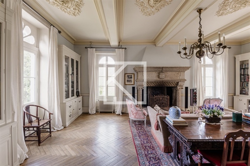 Au coeur d'un parc de 15 ha, agrémenté d'un jardin à la française, d'une chapelle, d'étangs et de jolis bois, se trouve un château du XIXème siècle style Renaissance d'une surface de 500m2 habitables. Au rez-de-chaussée, ses différents salons et espaces de réception agrémentés de cheminées vous séduiront par leur décoration soignée, leur volume et leur luminosité, sublimés par une très belle hauteur sous plafond. Un bel escalier balancé en bois massif avec garde-corps en fer forgé dessert deux paliers sur lesquels vous trouverez 8 chambres, 5 salles de bain dont 1 suite parentale avec son double dressing.
