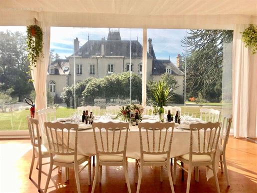 Un chapiteau de 450m2 sur parquet et son espace « traiteur » viennent compléter la propriété. La vente inclut l'ensemble du mobilier de réception et toute la lingerie/literie associée à l'hébergement événementiel. Vous pouvez ainsi démarrer immédiatement l'activité, qui ne demande qu'à être développée. Actuellement basée sur la location/mise à disposition des espaces de réception et d'hébergement, vous pouvez tout à fait développer l'activité en intégrant toute la chaîne de valeur dans votre projet (traiteur, animation, musique, décoration, etc) pour offrir une prestation complète aux clients. À ce jour, le château est occupé en habitation par ses propriétaires, mais vous pouvez également imaginer une exploitation professionnelle des lieux, ce qui permettrait d'augmenter encore le potentiel et la capacité du site. Le parc, soigneusement entretenu, est entouré de 17 ha de forêts et de terres agricoles en partie exploitées, l'ensemble de la propriété représentant plus de 32 ha.