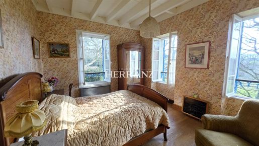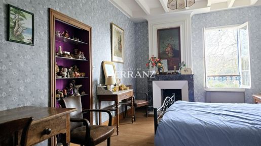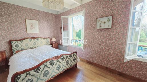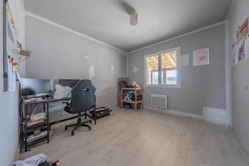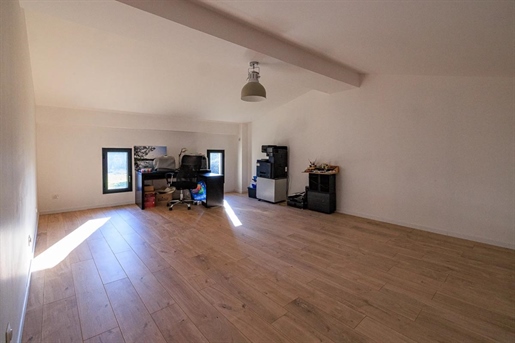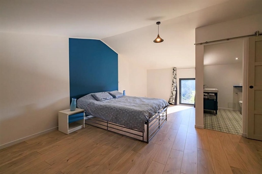 La visite se poursuit avec une suite parentale (actuellement à usage de bureau), composée d'une chambre et d'une salle d'eau faisant également office de buanderie, avec Wc. Un espace indépendant, pratique et confortable.