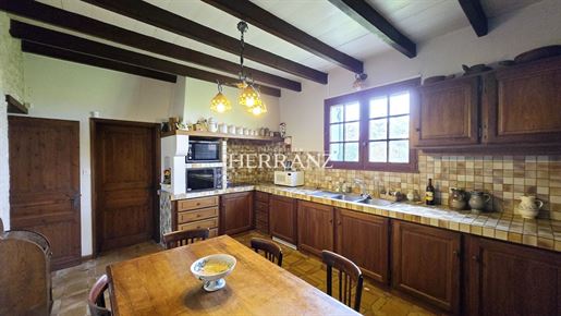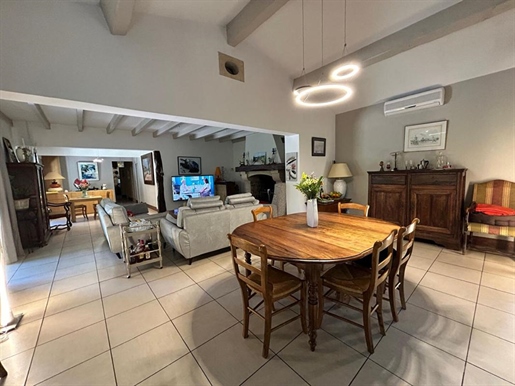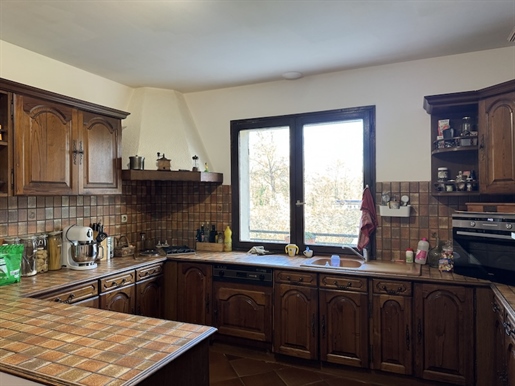 La cuisine, ouverte sur le séjour, est aménagée et équipée. Spacieuse et fonctionnelle, elle permet de cuisiner tout en restant en lien avec l'espace de vie, idéale pour les moments en famille ou entre amis.