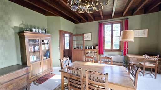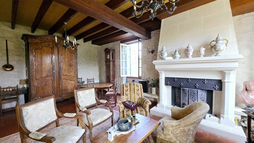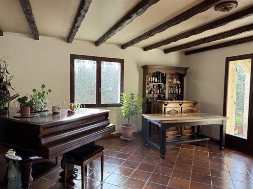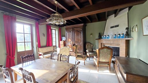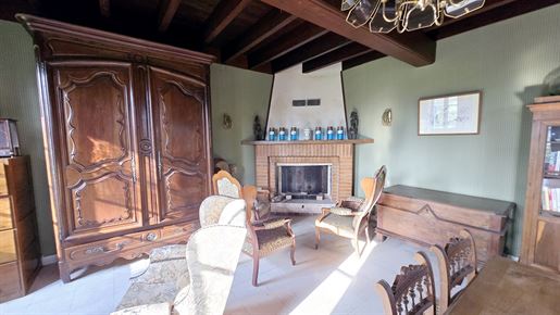 En avançant, on découvre ensuite le cœur de la maison : un séjour d'environ 27 m², chaleureux, doté d'une cheminée ouverte. Un espace de rangement intégré vient compléter la pièce, tandis que la vue s'ouvre naturellement sur le jardin, apportant une vraie sensation de calme et d'espace.