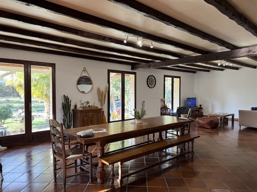 Côté confort, la maison est équipée de double vitrage partout, d'une pompe à chaleur gainable réversible assurant chauffage et climatisation, d'une isolation récente, de la fibre optique, et d'un assainissement collectif conforme. Les volets roulants sont électriques côté jardin, et battants sur la façade d'entrée.