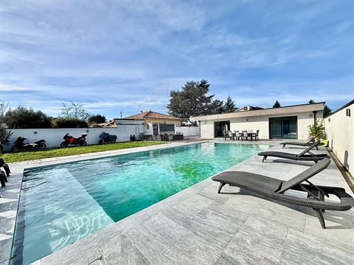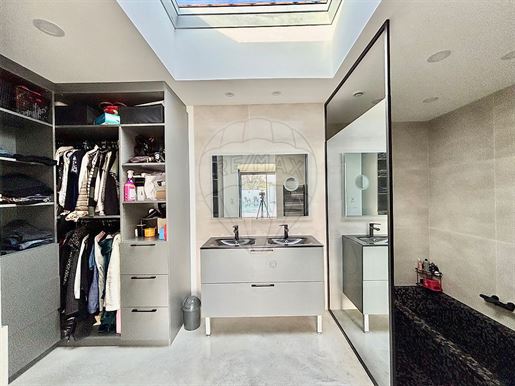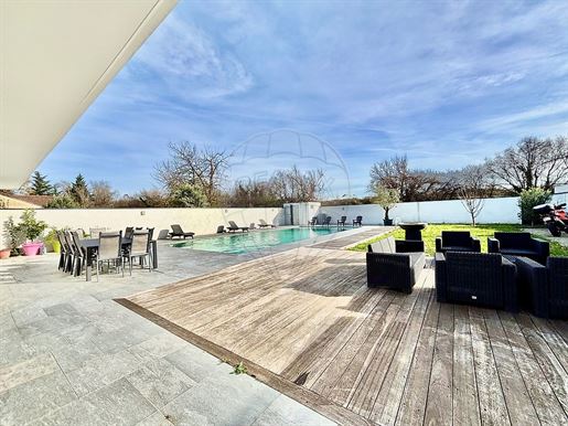 Maison contemporaine entièrement rénovée – Volumes remarquables – Environnement résidentiel calmeREMAX ImmoCalade a le plaisir de vous présenter cette maison contemporaine entièrement rénovée, développant une surface habitable de 262,56 m², située au sein d’un lotissement résidentiel calme et intime, tout en bénéficiant d’une proximité immédiate des transports, axes routiers et commodités.L’ensemble des espaces de vie principaux est organisé sur un seul et même niveau, offrant une circulation fluide et un confort de vie optimal. Vous découvrirez une pièce de vie de plus de 100 m², composée d’un vaste salon d’environ 77,7 m² et d’une cuisine de 25 m², formant un espace lumineux et convivial.La cuisine, de marque Modulnova, se distingue par la qualité de ses matériaux et la richesse de ses équipements. Elle est aménagée autour d’un îlot central et entièrement équipée avec trois fours intégrés (four traditionnel, four vapeur et micro-ondes), chacun disposant de tiroirs chauffants, un double réfrigérateur encastré, ainsi que trois hottes, dont deux intégrées dans les meubles et une dissimulée dans l’îlot central, préservant ainsi l’esthétique épurée de l’ensemble.Sur ce même niveau se trouvent également les espaces nuit, composés d’une suite parentale master, pensée comme un espace intime et indépendant, disposant d’un dressing, d’une salle de bains avec double baignoire, ainsi que d’un accès direct à la terrasse et au jardin. Deux autres suites, chacune équipée de sa salle d’eau et de son dressing, complètent ce niveau.Le sous-sol accueille une buanderie fonctionnelle, bénéficiant de nombreux rangements, ainsi qu’un T2 indépendant disposant de sa propre entrée. Ce logement se compose d’un séjour, d’une cuisine équipée, d’une salle de bains avec sanitaires, ainsi que d’une très grande chambre de plus de 20 m², offrant de multiples possibilités d’usage.À l’extérieur, vous profiterez d’un jardin d’environ 612 m², soigneusement aménagé pour la détente et la convivialité, avec une piscine creusée de 6 x 13 m, une pergola bioclimatique, une cuisine d’été avec sanitaires, un terrain de pétanque, ainsi que des espaces paysagers agréables. Un portail automatique complète l’ensemble.La maison bénéficie d’équipements techniques performants, avec une pompe à chaleur gainable chaud/froid et une VMC double flux, assurant un confort thermique optimal.L’ensemble a fait l’objet d’une rénovation complète et qualitative.Un bien aux volumes remarquables et aux prestations de qualité, pensé pour un confort de vie optimal dans un environnement résidentiel privilégié. Honoraires à la charge du vendeur. Les informations sur les risques auxquels ce bien est exposé sont disponibles sur le site Géorisques : .