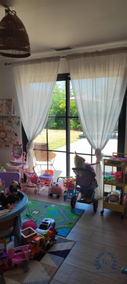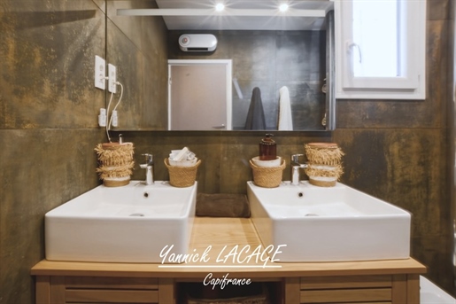 Portail motorisé, climatisation , menuiseries bois double vitrage avec moustiquaires, trois stationnements extérieurs en complément du garage, terrasse bois exposée plein Sud… chaque détail participe au confort quotidien.
