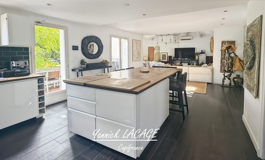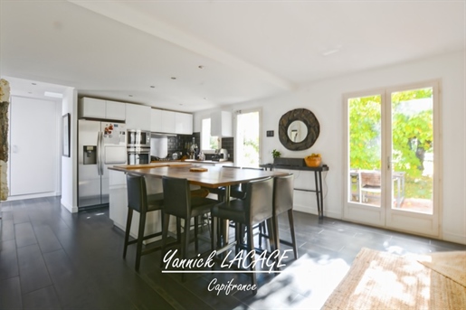 Rénovée intégralement avec un soin particulier porté aux matériaux et aux finitions, cette villa développe 112 m² habitables, complétés par une dépendance de 31 m² comprenant un garage et une pièce équipée pouvant accueillir un atelier, un studio indépendant ou une extension future.