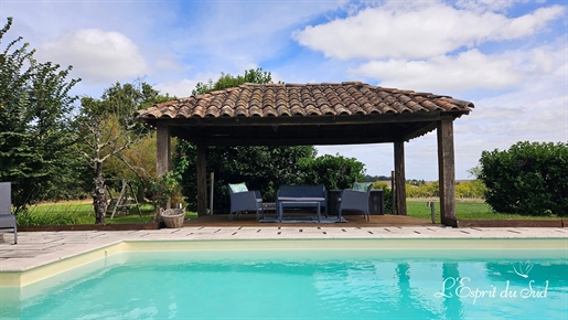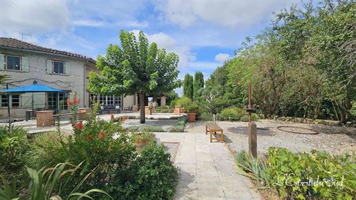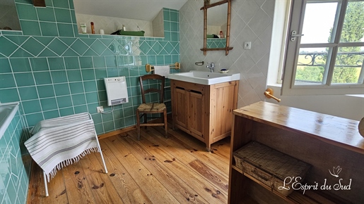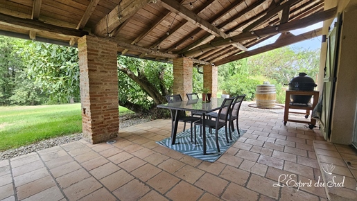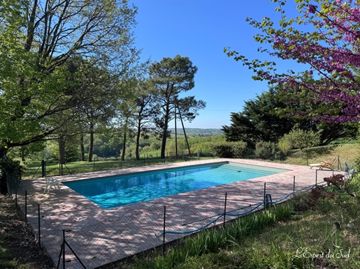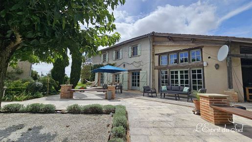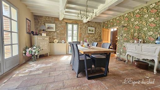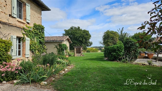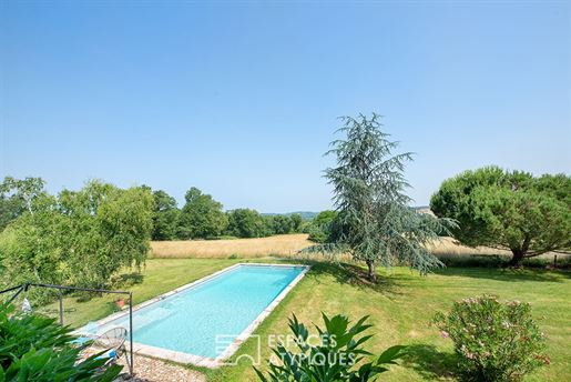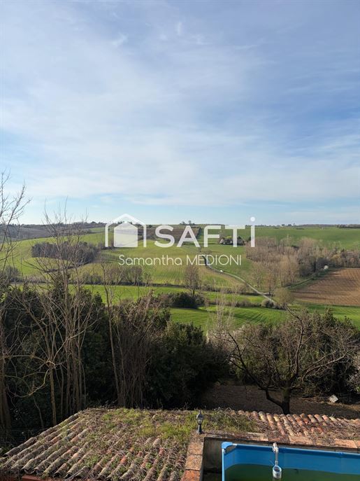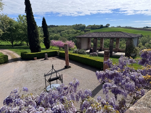 À la Sauzière-Saint-Jean, aux confins du Tarn et du Tarn-et-Garonne, cette propriété au charme patrimonial s'étend au coeur d'un domaine d'environ douze hectares. Ici, le paysage se déploie en collines, bois et prairies, dessinant un décor où la nature compose le quotidien.