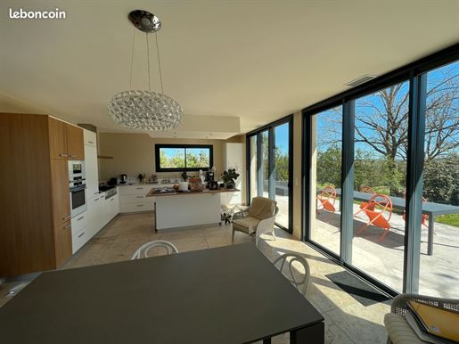 Une piscine (6×12 m) signe l'esprit de détente. Plus loin, le jardin, les potagers en permaculture, la mare, le lac privé et les bois structurent un paysage rare et préservé.