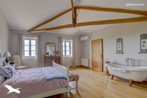 L'étage accueille six chambres aux volumes généreux, habillées de parquets et de tomettes, dans une atmosphère chaleureuse. Un vaste atelier d'environ 58 m², à terminer, ouvre des perspectives supplémentaires : espace de création, dortoir, salle de jeux ou bureau aux vues apaisantes sur la campagne environnante.