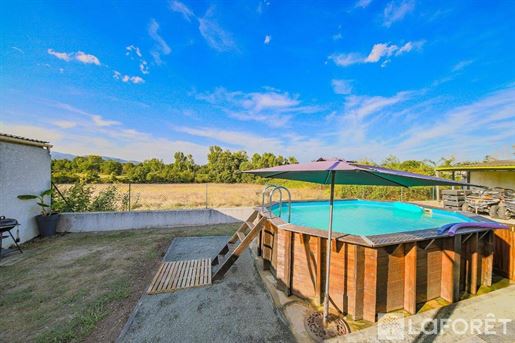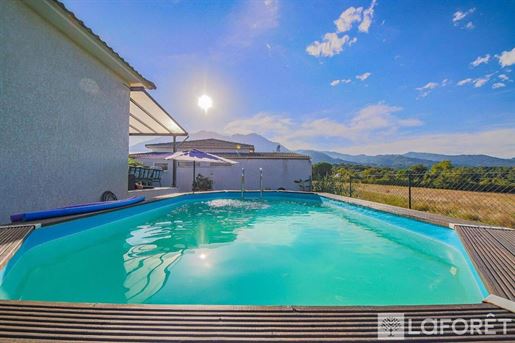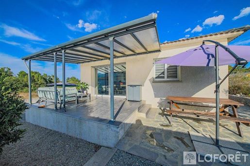 Villa moderne de charme bien entretenue et agréable de type T5, comprenant une décoration soignée, ensoleillée dans un cadre verdoyant. La propriété est sécurisée et bénéficie de 1025 m² de terrain clôturé, portail automatique neuf. Date de construction 2009, extension réalisée en 2023 par un dessinateur. En ce qui concerne la position de la propriété : Un lieu particulièrement calme, l’accès se fait par un chemin privé, très peu de vis à vis pour un maximum de tranquillité. La maison est proche de plusieurs départs de randonnées, piscines naturelles, site archéologique à 500 mètres, et de surcroît, à 2 km de la cascade de l'Uccelluline. Agréable vue sur le mont d’Osari, la plaine orientale, le village et la mer. Le village se situe à 1 km. Idéal pour qui recherche le calme, la sérénité, néanmoins, toutes les commodités (courses, soins, loisirs, plages, port de Taverna...) se situent entre 5 et 10 minutes en voiture... 124 m² de surface, soit 4 chambres dont 2 chambres lumineuses côté montagne comprenant chacune 11 et 12 m². Une chambre de 15 m² côté mer, 1 salle de bain baignoire et Wc séparé. Salon cuisine ouverte d’une superficie totale de 45 m². Concernant l’extension, vous découvrirez une grande chambre côté mer, et salle d’eau Wc d’une superficie de 19 m². A l’extérieur, deux terrasses dont une en teck Ipe afin de profiter du soleil, barbecue en famille, puis, une petite piscine d'agrément privative de 3,5 m X 2 m en bois, pour finir, 1 bassin à poissons. Parking trois voitures, abri de jardin, cave, climatisations réversibles, cheminée insert… Matériaux de qualité... Vente cause déménagement professionnel. Dépenses énergétiques annuelles moyennes : 800€ Taxe foncière : 1400€ Autres renseignements techniques ou financiers sur simple demande. Avion A 15 km, Bateau A 25 Km Transaction de particulier à particulier, pas d’agence merci.