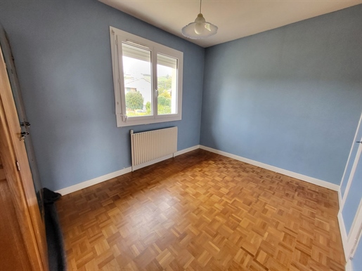 une pièce de vie de 45 m2 avec cuisine ouverte, cellier, 3 chambres, salle d'eau, wc, et un grand garage.