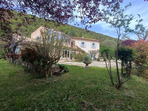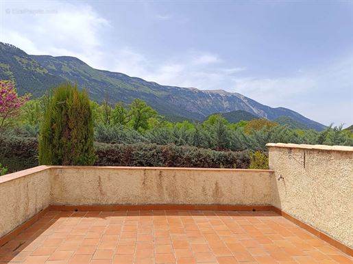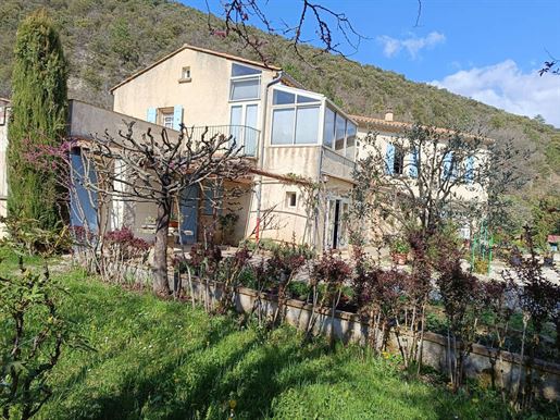 En provence, a savoillan, dans la vallee du toulourenc, venez decouvrir cette spacieuse et lumineuse maison construite en 1975, avec sa surface habitable totale de 180m2, soit 2 logements de 114m2 et 66m2, grandes dependances (3 garages de 43m2, 20m2, et 16m2), remise independante, terrasse, le tout edifie sur un magnifique terrain piscinable de 13.000m2 environ, avec une vue imprenable sur le mont-ventoux, les collines environnantes,