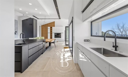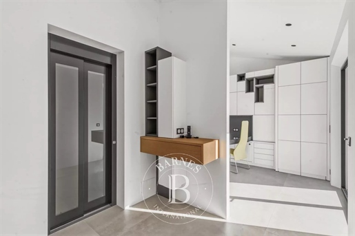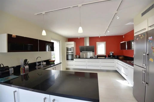 Swimming pool (9 x 4), garage + workshop, underfloor electric heating, reversible air conditioning, electrically operated gate.