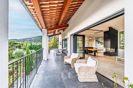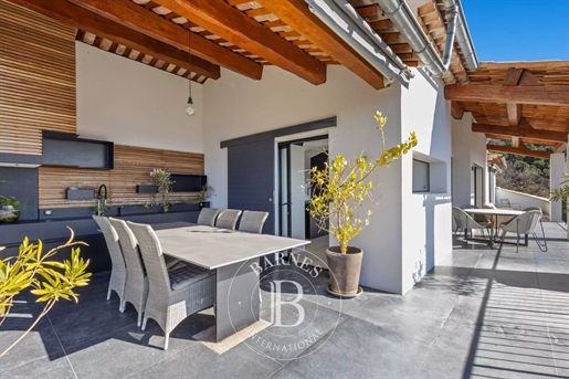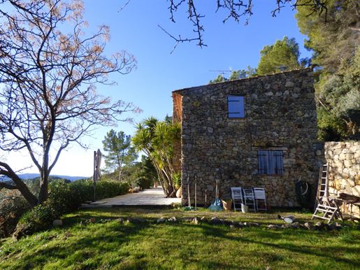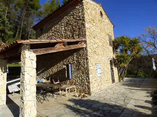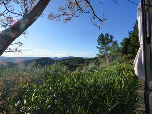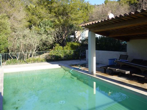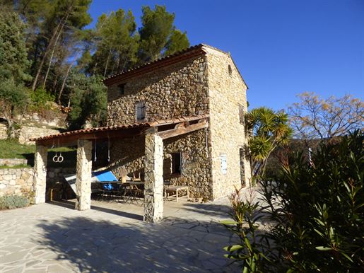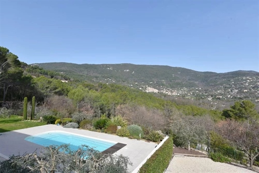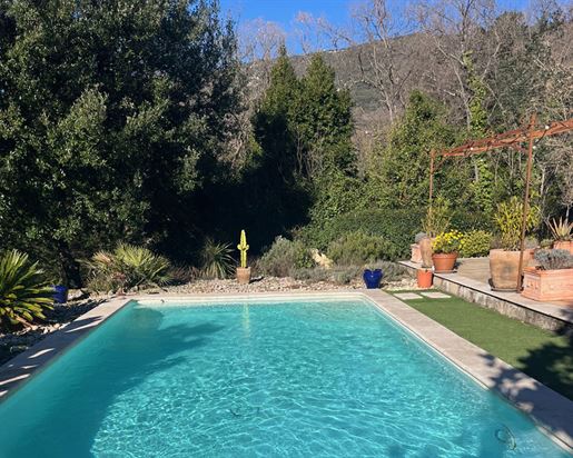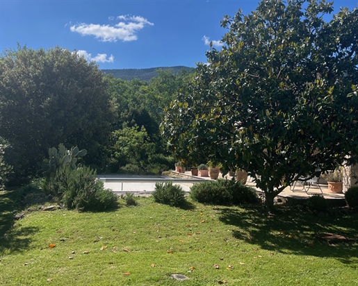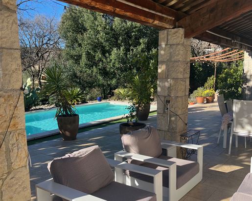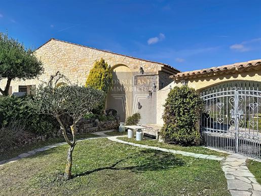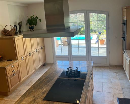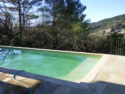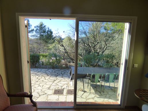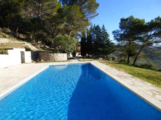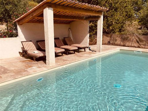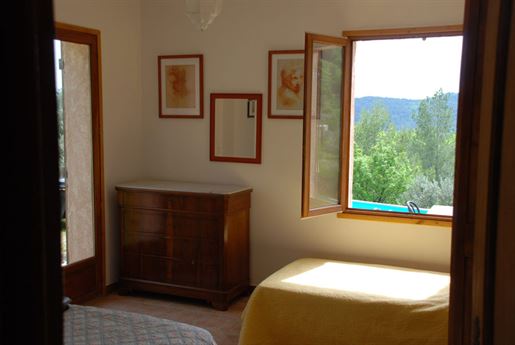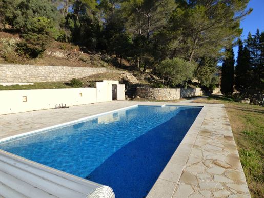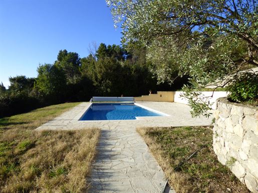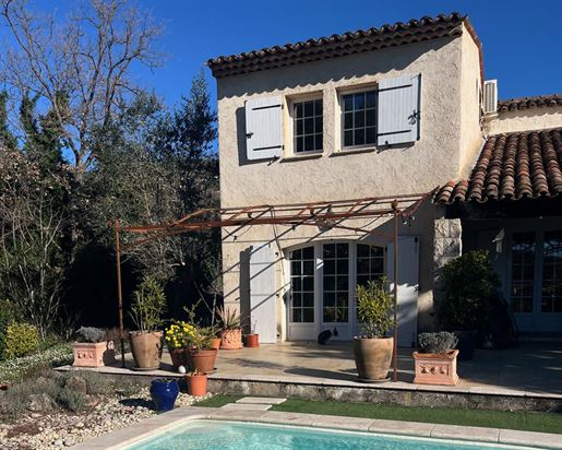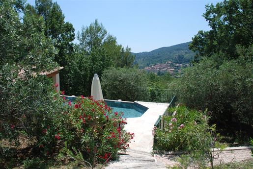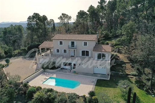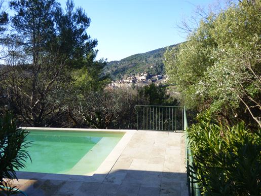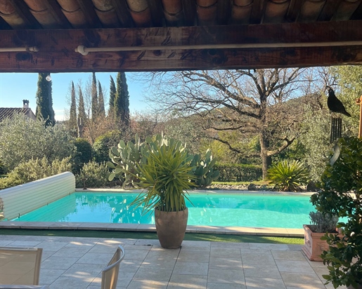 Family home in perfect condition, close to the village, on a plot of 2000 m2 with olive trees, pool, garage, workshop, reversible air condition, for sale, in Seillans