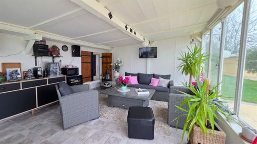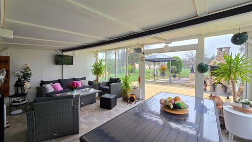 L'agence des 3 Rivières vous propose en exclusivité cette charmante longère de plain-pied, nichée dans un environnement calme et verdoyant, en pleine campagne sur la commune de Saint-Christophe-en-Bresse, tout en restant à seulement 15 minutes de Chalon-sur-Saône, à proximité des commodités et des écoles. Développant environ 130 m² habitables, cette belle longère séduit immédiatement par son authenticité et ses volumes généreux. Entièrement de plain-pied, elle s'ouvre sur un hall d'entrée accueillant qui mène à une cuisine récente, équipée et lumineuse d'environ 16 m², agréable et fonctionnelle au quotidien. La pièce de vie de 46 m², véritable coeur de la maison, offre un espace convivial et chaleureux, sublimé par les poutres apparentes qui conservent tout le charme de l'ancien. Elle bénéficie d'un accès direct à la véranda, idéale pour profiter de l'extérieur en toute saison. Un dégagement dessert ensuite quatre belles chambres, confortables et bien réparties, d'environ 11, 12, 13 et 14 m², permettant d'accueillir famille et invités dans de très bonnes conditions. L'espace nuit est complété par une salle de bain avec baignoire et sèche-serviettes, ainsi que des Wc indépendants. Côté pratique, la maison dispose également d'un cellier et d'une buanderie, apportant un réel confort d'organisation. A l'extérieur, la propriété offre de nombreuses dépendances qui viennent renforcer son potentiel. La véranda de 25 m² s'ouvre sur une vue dégagée et agréable, orientée vers l'espace barbecue et piscine hors-sol de 10 x 5 m, parfait pour les moments de détente et de convivialité. Un garage d'environ 20 m², un bûcher, plusieurs appentis et petites dépendances, ainsi qu'un chalet de 12 m² avec terrasse complètent l'ensemble. Le terrain, d'une superficie de 2 735 m², est entièrement clôturé, avec une partie cour et une partie verdure agrémentée d'arbres fruitiers, offrant un cadre de vie paisible et agréable. L'accès se fait par un portail motorisé. Concernant les équipements, la maison est actuellement équipée de menuiseries en simple vitrage avec volets persiennes, d'un chauffage central au fioul, et d'un assainissement individuel fonctionnel mais non conforme, laissant la possibilité aux futurs acquéreurs d'adapter ces éléments selon leurs besoins et leurs projets. La toiture est en bon état, et les combles sont aménageables, offrant de belles perspectives d'évolution. Une propriété pleine de charme et de potentiel, idéale pour les amateurs de calme, d'espace et d'authenticité, souhaitant personnaliser leur futur lieu de vie dans un cadre verdoyant. Pour plus d'informations ou pour organiser une visite, veuillez l'Agence des 3 Rivières. Nous sommes à votre disposition pour répondre à toutes vos questions et vous accompagner dans votre projet immobilier. Ce bien est présenté par Adeline Perchet de l'Agence des 3 Rivières - - Saint Germain du Plain. Les informations sur les risques auxquels ce bien est exposé sont disponibles sur le site Géorisques : Numéro de mandat : 4945 Plus d'information : - Piscine Honoraires à la charge du Vendeur Bien En copropriété : Non Lieu : Saône-et-Loire (71)