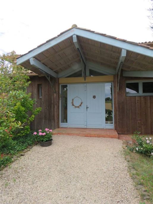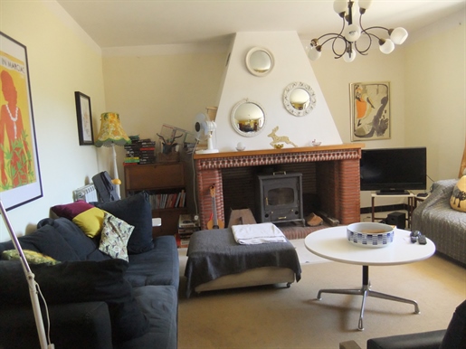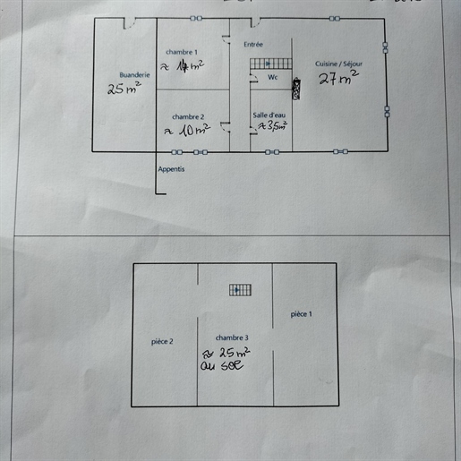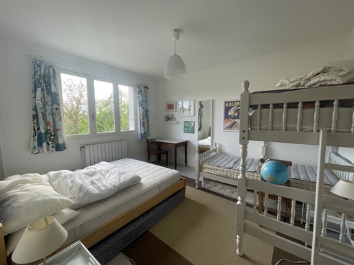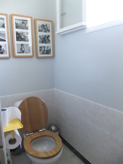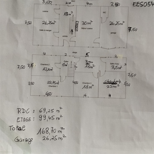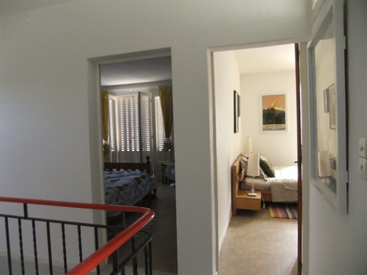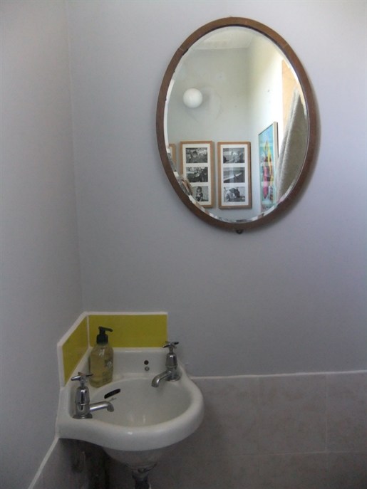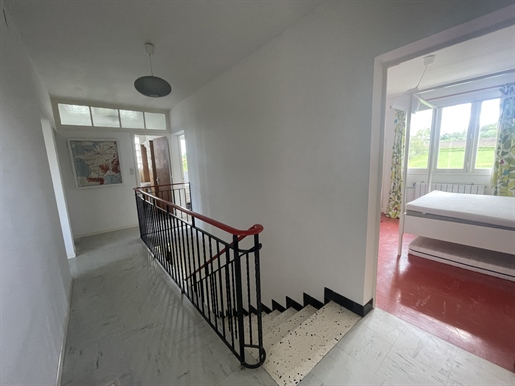 Living room (74 m²), open fireplace, French doors front and rear leading to terrace and pool, very bright.Kitchen/dining room (74 m²), French doors, ground-floor cloakroom with washbasin and WC.First Floor