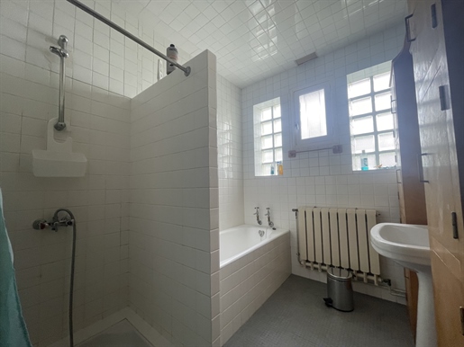 Through entrance hall (25.5 m²), running the full depth of the house, terracotta floors, French doors opening onto the rear park, four reception doors, remarkable height and depth (10 m).Dining room (23.3 m²), fireplace, two windows overlooking the park.Living room (24.7 m²), two park-facing windows, marble fireplace with wood-burning stove.Sitting room (29.2 m²), parquet flooring, wood paneling, park views, open marble fireplace.Inner corridor (16.3 m²) with two courtyard-facing windows and generous staircase.Cloakroom with Wc (4.3 m²).Kitchen/dining room (21.3 m²).Secondary living room (18.8 m²) with French doors to the outside.Back kitchen (26.6 m²).Laundry room (10.9 m²).Wine cellar (26.1 m²), fitted out in the former stables, tiled, with direct access to the boiler room (5.9 m²).First Floor