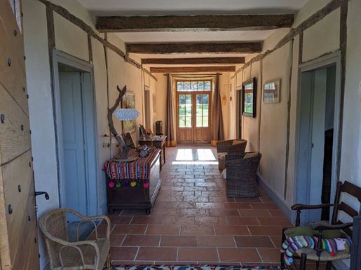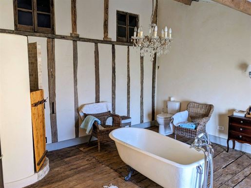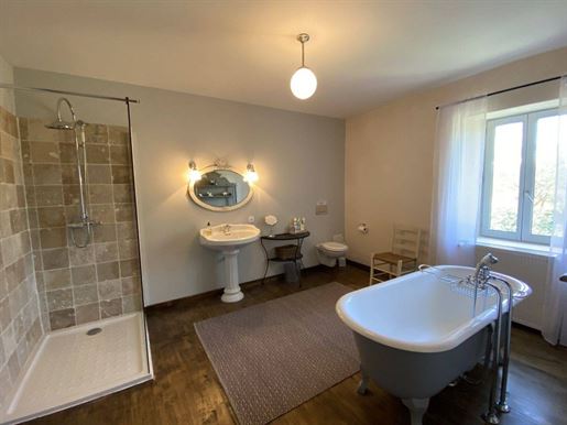 Located in the heart of a wooded park of over one hectare, in an elevated position, this exceptional manor house—fully and carefully restored—is accompanied by an independent farmhouse (gîte) of remarkable quality.