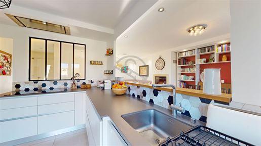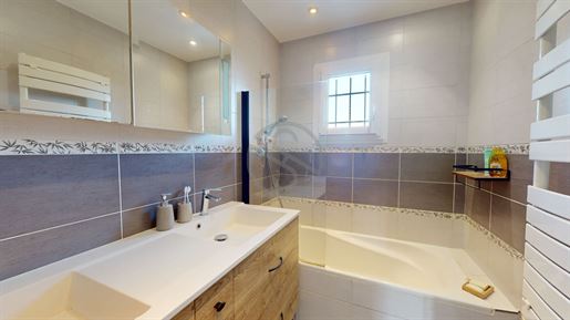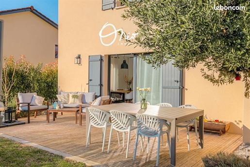 Nouvelle exclusivité Onéo Immobilier ? Venez découvrir "Diane", une Ravissante Maison contemporaine édifiée en 2018, implantée sur une parcelle de 267 m². Elle développe 116 m² habitables, propose 4 chambres, un Grand Garage et un espace extérieur cosy, à l'abri des regards. Dès l'entrée, vous serez séduits par la fonctionnalité et l'ergonomie des lieux : une entrée confortable avec Rangements, offrant un accès direct au garage et à la buanderie/cellier. Elle s'ouvre sur une superbe pièce de vie de plus de 45m², composée d'un espace salon, d'une salle à manger et d'une Cuisine Ouverte, aménagée et équipée, idéale pour des moments conviviaux en famille ou entre amis. La Luminosité est un véritable atout : la pièce de vie bénéficie d'une triple exposition, apportant une clarté naturelle tout au long de la journée. La cuisine se distingue par ses nombreux plans de travail et sa grande Fonctionnalité, offrant un confort optimal pour cuisiner au quotidien. Le salon-salle à manger, quant à lui, dispose d'un double accès à la terrasse, garantissant une circulation fluide entre intérieur et extérieur. À ce niveau, vous accédez également au Garage traversant, aujourd'hui aménagé en espaces de stockage, atelier, buanderie/cellier et chaufferie. Sa belle superficie (24,53m²) permet tout à fait d'envisager le stationnement d'un véhicule tout en conservant ces zones réduites. Un Wc indépendant complète le rez-de-chaussée. À l'étage, l'espace nuit se compose de trois chambres confortables, toutes équipées de placards, d'une salle de bain avec douche, Double Vasque, sèche-serviettes et fenêtre, ainsi que D'une Chambre Parentale aux volumes généreux (20m²), offrant la possibilité d'aménager un espace télétravail ou détente. À l'extérieur, le Coquet Jardin séduira ceux qui recherchent un entretien facile (arrosage automatique). La terrasse en bois, chaleureuse et accueillante, l'espace potager, l'olivier et la vigne vierge confèrent à l'ensemble une ambiance provençale, propice à la détente et à la convivialité. La maison est accolée par le garage à une autre habitation, tout en restant Indépendante par le bâti. Côté confort, vous apprécierez la performance énergétique (Dpe C) et la modernité des équipements propres à une construction récente. Côté commodités, la situation est idéale : centre du village accessible à pied, commerces de proximité, écoles, bibliothèque et vie associative dynamique. Les accès sont rapides : Solaize est désservie par les Tcl, l'accès A7 est à 2 minutes en voiture, l'entrée de Lyon est à seulement 10 minutes, et les Gares de Sérézin-du-Rhône et Feyzin ne sont qu'à quelques minutes également. Notre avis : une maison où l'on se sent bien dès les premières minutes. Un emplacement idéal, une construction moderne et impeccable, et cette sensation rare d'un lieu prêt à accueillir une nouvelle histoire de vie. Il ne reste plus qu'à poser ses valises et profiter pleinement de la douceur de vivre d'une commune particulièrement appréciée. - Construction 2018 - Surface 116m² - Parcelle 267m² - 4 chambres - Pas de charge de copropriété - Magnifique luminosité - Système anti calcaire - Chauffe eau thermodynamique - Grand garage + Carport - Arrosage automatique - Jardin clos - Toit en tuile de Sainte Foy - Taxe foncière 949 € - Fibre Prix de vente : 449.000 € (Honoraires Charges Vendeurs) Pour plus d'informations, contactez Carole - / - Onéo immobilier 10 rue du 11 novembre 1918 - Mions Carole Frezza (Ei) Agent Commercial - Numéro Rsac : 450 375 522 - Lyon.