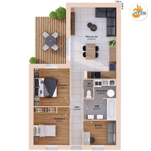 Terrain de 412m² au c?ur de la charmante ville de Tinténiac. Idéalement localisé, ce terrain offre un cadre de vie privilégié, alliant le calme et la sérénité d'un environnement naturel, tout en bénéficiant de la proximité des commodités urbaines. Tinténiac, ville dynamique et accueillante, est réputée pour sa qualité de vie, ses infrastructures modernes et ses nombreuses activités culturelles et sportives. Ce terrain, d'une superficie de 412m², est une véritable opportunité pour ceux qui souhaitent construire la maison de leurs rêves dans un cadre verdoyant et paisible. Son emplacement stratégique offre un accès rapide aux écoles, aux commerces, aux services de santé et aux transports en commun, facilitant ainsi le quotidien de ses futurs propriétaires. La ville de Tinténiac, nichée entre la ville historique de Dinan et la métropole de Rennes, est également un point de départ idéal pour découvrir les richesses de la Bretagne. Entre la côte d'Émeraude, le Mont Saint-Michel et la forêt de Brocéliande, les amoureux de nature et de patrimoine seront comblés. En somme, ce terrain de 412m² à Tinténiac est une opportunité à saisir pour tous ceux qui cherchent à concilier vie urbaine et tranquillité. Ne manquez pas cette chance de construire votre futur dans ce cadre idyllique. Contactez nous dès aujourd'hui pour plus d'informations. A la une de l'actualité immobilière, une maison de type étage se démarque par son charme et ses prestations de qualité. Sise sur un terrain généreusement proportionné, cette demeure de 115 m² offre un cadre de vie idéal pour une famille en quête de confort et de tranquillité. Le charme de cette habitation est accentué par sa toiture en ardoises, un matériau noble et durable, qui ajoute une touche d'élégance à l'ensemble. Son architecture bien pensée optimise l'espace et la luminosité, offrant une ambiance chaleureuse et accueillante. La maison se compose de 5 pièces, dont 4 chambres spacieuses. Chaque pièce a été conçue pour offrir un maximum de confort, avec une attention particulière portée aux détails. Les chambres, dotées de rangements fonctionnels, offrent un espace privilégié pour le repos et la détente. La pièce à vivre, vaste et lumineuse, est un véritable lieu de convivialité. La cuisine, moderne et équipée, ravira les amateurs de gastronomie. La salle de bains, quant à elle, offre un espace de bien-être avec sa baignoire et sa douche à l'italienne. Belles Prestations pour cette réalisation Trecobois. En confiant votre projet de construction de maison à ossature bois à Trecobois, vous avez la garantie d?un suivi personnalisé et continu, tout au long de l?avancement de la construction. Le cout du projet inclut : le prix du terrain viabilisé (69000 euros), les frais de notaire estimés 6656 euros et le prix de la construction d'une maison neuve 170654 euros dans le cadre de la loi du 19 décembre 1990, n°90-1129, y compris les garanties et assurances obligatoires du contrat de construction de maison individuelle. Nos offres de terrains constructibles sont proposées en collaboration avec nos partenaires fonciers, selon disponibilité. Le groupe Trecobat en sa qualité exclusive de constructeur n'est pas le vendeur du terrain et n'est pas mandaté pour réaliser la vente du terrain. Consulter sur notre site les mentions légales de nos annonces. Référence annonce : Mcho-
