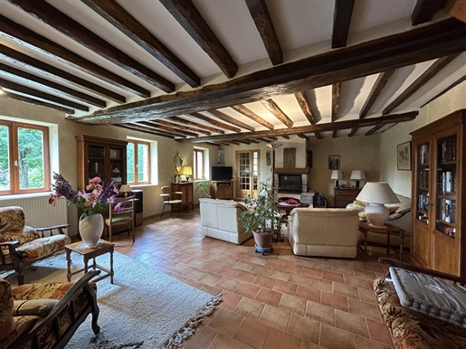 Située dans un environnement exceptionnel, cette propriété de caractère offre un cadre de vie rare, au calme absolu, au milieu de 14 hectares mêlant forêts, vergers, étangs et jardins paysagers. L’Ensemble du domaine est traversé par des chemins privés permettant de belles promenades en pleine nature. Un véritable Eden qui est la grande force de cet ensemble coup de coeur. La maison principale se compose, classiquement, au rez-de-chaussée, d'une cuisine aménagée, d'une belle pièce de vie avec cheminée, d'une chambre avec accès direct à une terrasse équipée d’un spa extérieur, d'une salle d’eau, d'une buanderie/chaufferie, et d'un Wc indépendant. À l’étage, une grande pièce à usage de bureau ou de salle de billard, avec une belle vue panoramique sur l’étang, deux chambres, deux salles d’eau, et un Wc. Attenant à la maison, une partie loft indépendante offre, au rez-de-chaussée, une cuisine, une pièce de vie, chaufferie et, à l’étage, une chambre, salle de bains, Wc. De nombreuses dépendances complètent ce bien : cave, bûcher, atelier, bergerie et garage. À l’extérieur, plusieurs espaces de détente rythment ce domaine : une grande terrasse avec vue sur l’étang privé (1,5 hectare), un kota (petit chalet finlandais) grill avec ponton, un potager, un verger, une tiny house aménagée avec terrasse et barbecue, face à trois plans d’eau. Un bien d’exception, idéal pour les amoureux de nature, les projets d’accueil ou les résidences familiales à la campagne. Ce qu’on aime ? La sérénité absolue, les promenades au fil des étangs. Bref, un domaine pensé pour savourer chaque saison au rythme de la nature, un lieu hors du temps et cette sensation rare de bout du monde… Les informations sur les risques auxquels ce bien est exposé sont disponibles sur le site Géorisques : Prix de vente honoraires d'agence inclus : 1 266 000 € Prix de vente hors honoraires d'agence : 1 196 370 € Honoraires charge acquéreur : 69 630 € soit 5,82 % Ttc de la valeur du bien hors honoraires Contactez votre conseiller Safti : Fany Lalanne, Tél. : , E-mail : - Ei - Agent commercial immatriculé au Rsac de Versailles sous le numéro