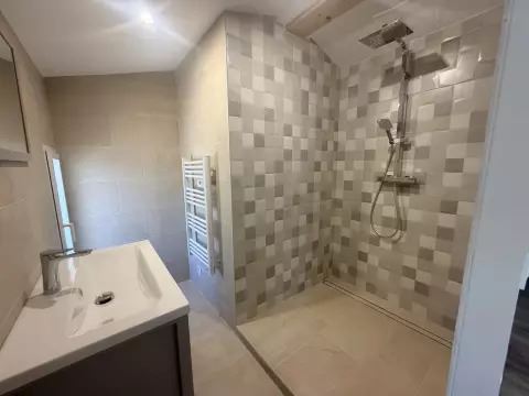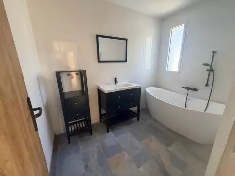 Au rez-de-chaussée, un espace dédié aux invités ou aux locataires ( 4 couchages ) indépendant avec chambre, salon, rangements, douche, toilettes, cuisine américaine équipée, terrasse, idéales pour une location saisonnière.