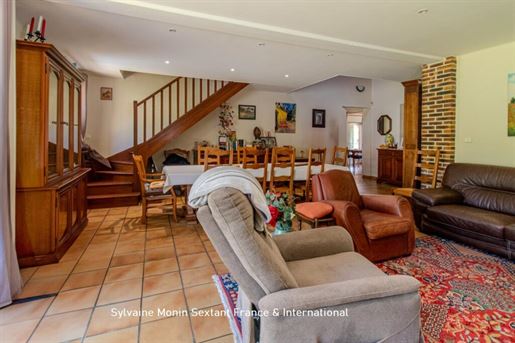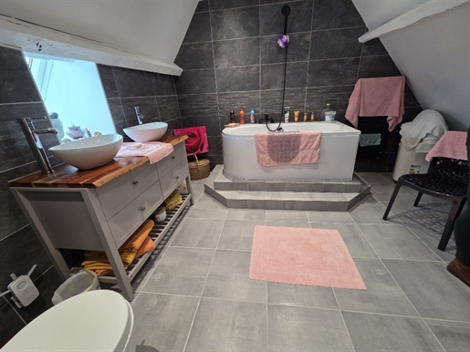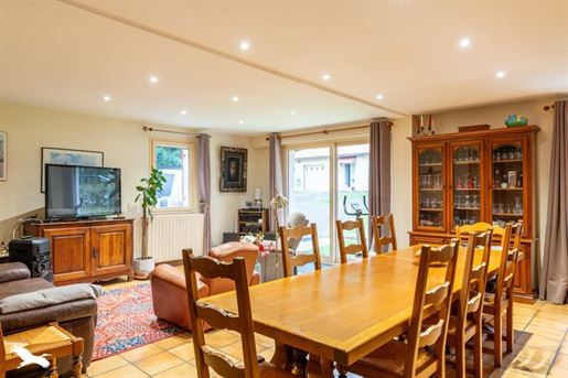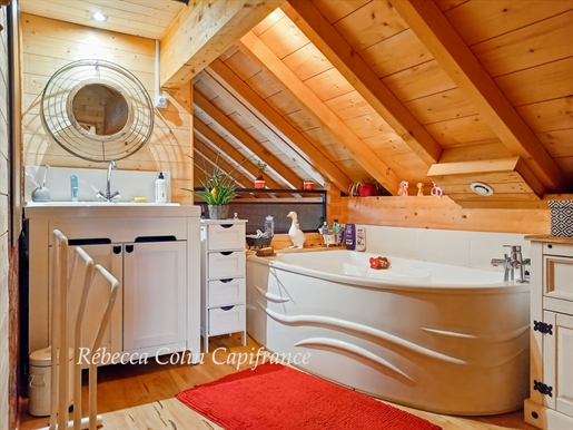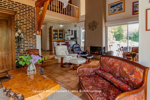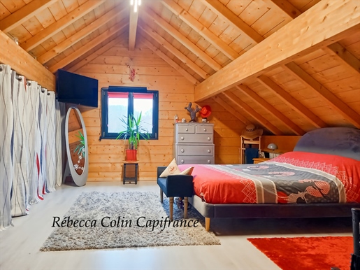 Dès votre arrivée, vous serez séduit par l'atmosphère chaleureuse et les volumes généreux de cette maison. Le rez-de-chaussée s'ouvre sur un vaste séjour cathédrale de 44 m², agrémenté d'une cheminée, parfait pour des moments de convivialité. La cuisine équipée, ouverte sur un coin repas, invite à partager des instants gourmands, tandis qu'un salon indépendant avec cheminée offre un espace de détente supplémentaire. Deux chambres en rez-de-chaussée, chacune avec salle d'eau privative, complètent cet espace, accompagnées d'une buanderie/chaufferie et de toilettes séparées. À l'étage, une mezzanine de 30 m², idéale pour un bureau ou un espace de loisirs, dessert deux autres chambres, dont une avec salle d'eau privative.