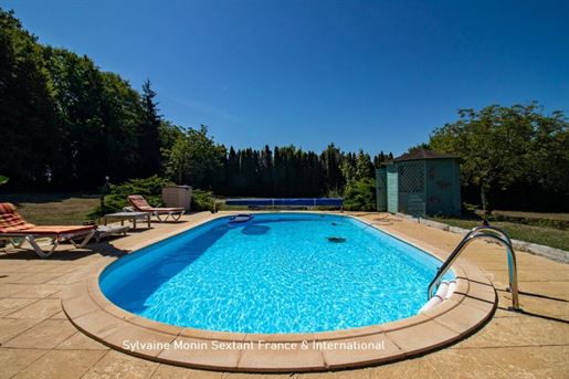 Les extérieurs, soigneusement aménagés, promettent un cadre de vie exceptionnel. Le terrain plat de plus de 1,5 hectare est entièrement clôturé et constructible, offrant de nombreuses possibilités. Deux terrasses, dont une couverte, permettent de profiter de l'extérieur en toute saison, tandis qu'une piscine de 10 x 5 m avec un liner récent invite à la détente. Les dépendances comprennent un garage double, un atelier, une cave, un second garage ou abri de jardin de 15 m², ainsi qu'un appentis pour le stationnement d'un camping-car. De nombreuses places de parking sont également disponibles.