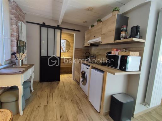 Un gîte comprenant un cuisine aménagée, salon, salle d'eau avec wc, et chambre.