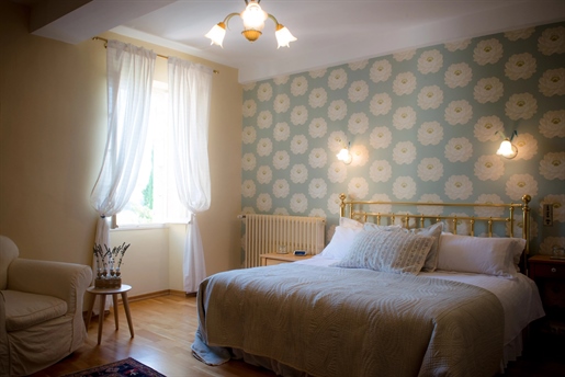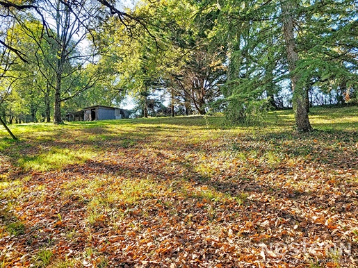 Nous accédons à cette propriété par une route qui grimpe jusqu'au sommet d'une colline offrant une vue panoramique sur la campagne environnante, visible sur trois côtés.