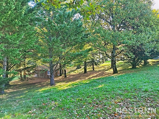 Un mur de pierre bâti par les propriétaires longe l'arrière du jardin, qui jouxte également 4000 m² de bois privés.