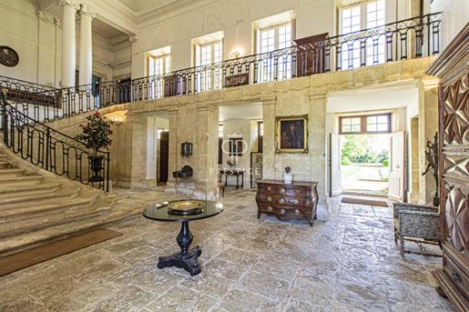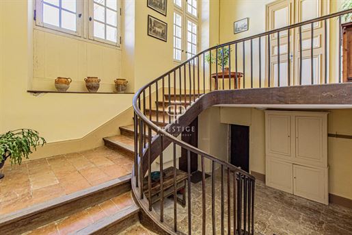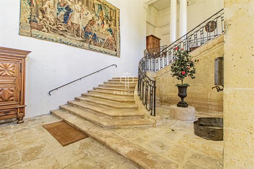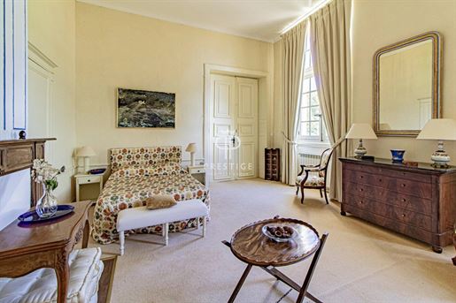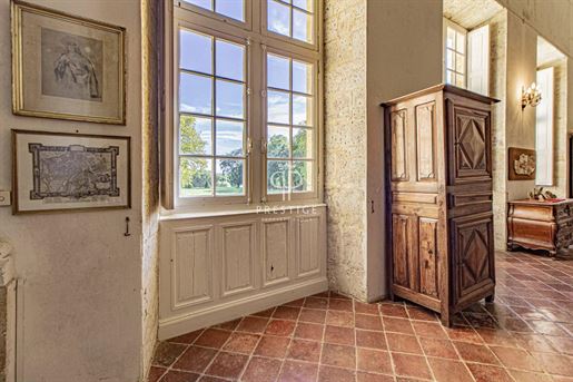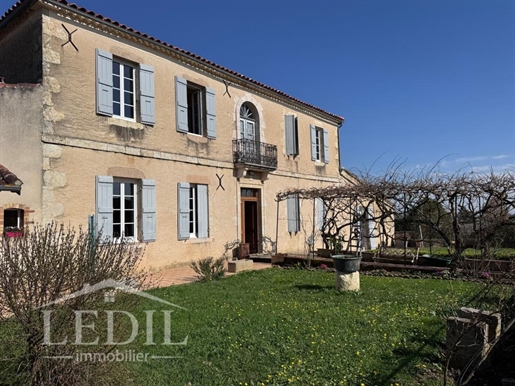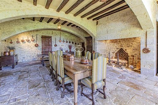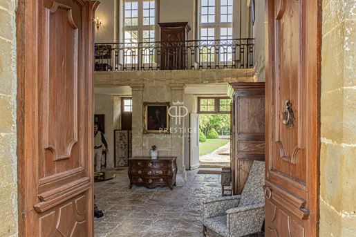 Nous découvrons ici une ancienne propriété d'Armagnac en pierre, entourée de somptueux jardins et d'arbres centenaires, dont des chênes et des cèdres majestueux.