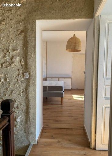 À l'étage, deux belles chambres aux hauts plafonds et poutres exposées encadrent une salle d'eau commune avec douche, lavabo et WC.