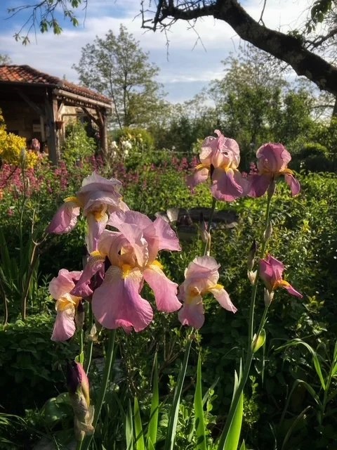 Les jardins, finement structurés par de petits murets en pierre, des sentiers sinueux et des massifs fleuris, entourent la propriété.