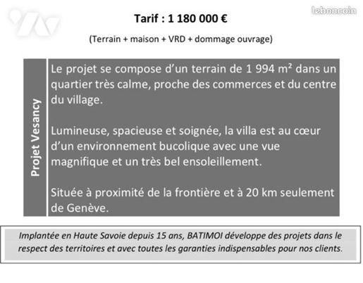 Implantée dans une impasse au coeur de Vesancy, cette villa profite d'un cadre rare et paisible, véritable havre de paix. À mi-chemin entre Gex et Divonne-les-Bains, vous profitez de toutes les commodités, commerces et établissements scolaires, de la maternelle au lycée, accessibles en quelques minutes seulement. La frontière suisse est également à proximité, ce qui en fait une adresse idéale pour les frontaliers.