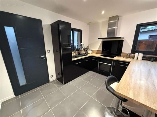 La cuisine américaine aménagée et équipée, ouverte sur le séjour, crée un espace convivial parfaitement adapté à la vie de famille et à la réception.