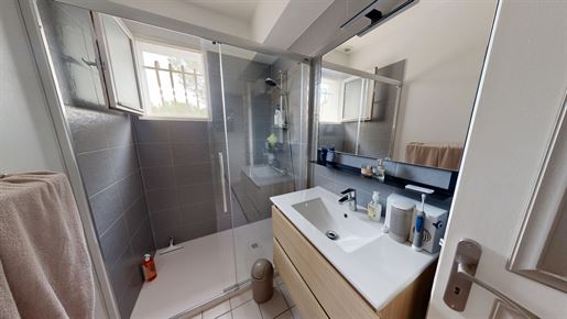 L'ensemble bénéficie de superbes baies vitrées aluminium double vitrage à galandage, offrant une ouverture totale vers l'extérieur, complétées par des volets roulants centralisés pour un confort et une sécurité optimale.