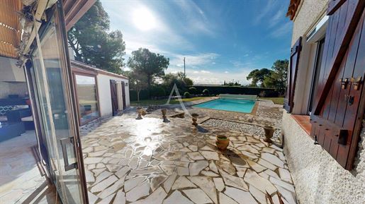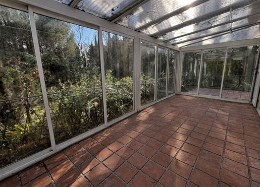 Implantée sur un magnifique terrain arboré de plus de 3 600 m², la propriété offre un cadre de vie rare, au calme, avec une vue remarquable sur les Pyrénées et la Cité de Carcassonne.