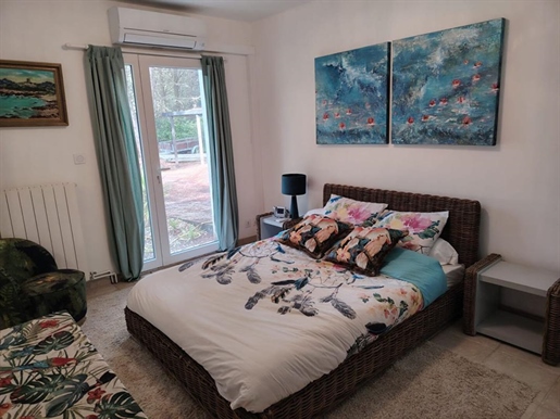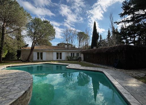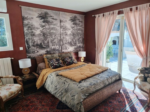 A l'extérieur, le jardin paysagé, sublimé par de superbes arbres et des oliviers, offre une atmosphère paisible et élégante.