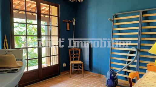 Le troisième logement, en partie basse, profite d'une terrasse abritée par une tonnelle et d'un auvent typiquement provençal, avec entrée, séjour avec cuisine ouverte, plusieurs chambres douillettes, salles d'eau et de bains, ainsi qu'une chaufferie et des espaces de rangement annexes, parfaits pour un usage familial ou locatif.