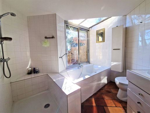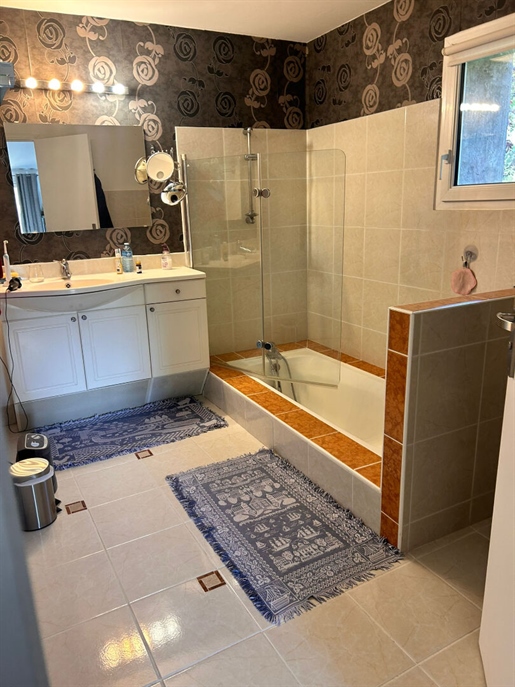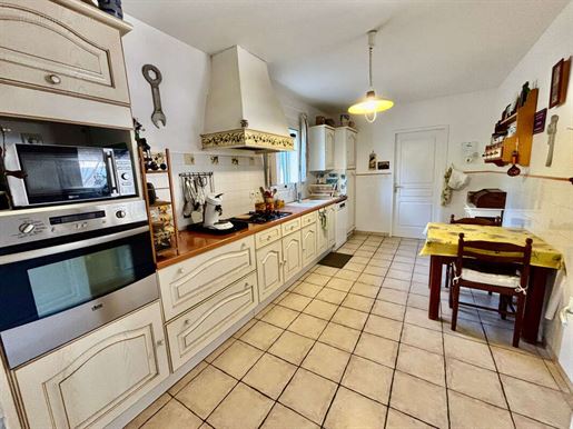 À l'extérieur, plusieurs terrasses ombragées par des tonnelles invitent à la détente et aux repas en plein air, tandis qu'une superbe piscine au sel de forme libre, récemment équipée d'un système de filtration moderne, profite d'une vue panoramique exceptionnelle sur la campagne environnante. En contrebas, un vaste sous-sol abrite buanderie, chaufferie et espaces de rangement, ajoutant à la fonctionnalité du lieu.
