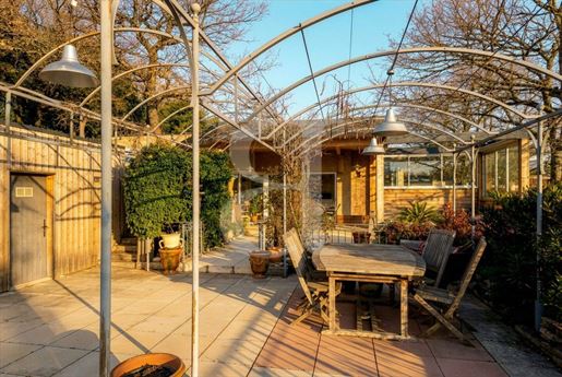 La maison principale, installée dans la partie haute du terrain, séduit par ses volumes généreux et son ambiance chaleureuse.