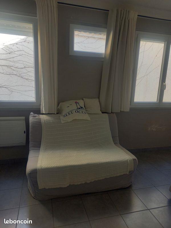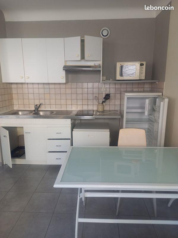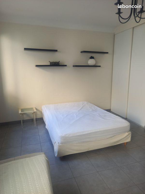 Location grand studio meublé à compter du . 30 m2,entrée,salle de bains et wc séparés,machine à laver,vue sur patio, très calme tout en étant au centre ville.Petite copropriété de 4 and placard,lit , canapé,tv.