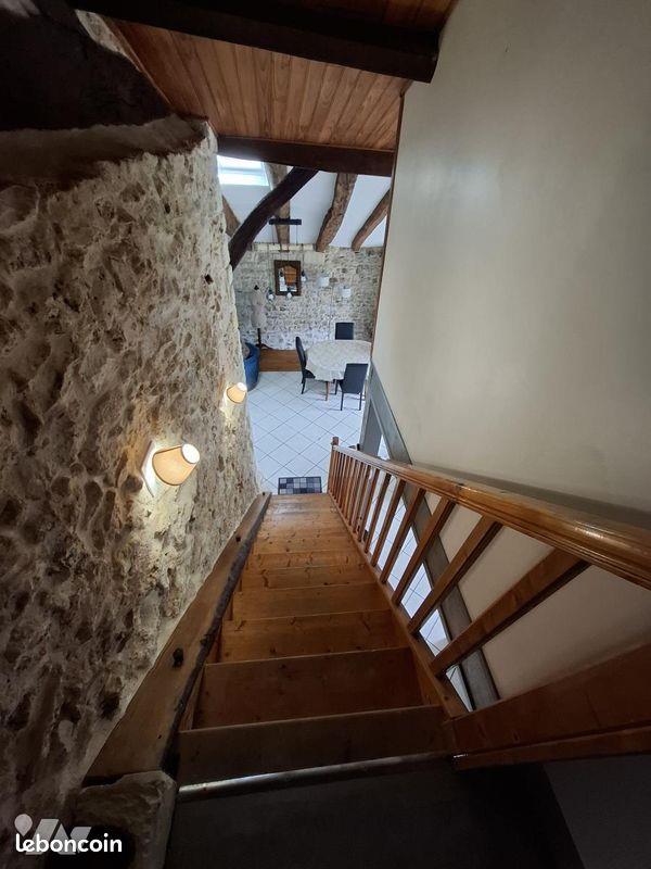 Elle se compose d'un salon/séjour avec plafond cathédrale donnant sur une cuisine ouverte équipée, un dégagement, une chambre, une salle d'eau, un wc à l'étage un palier, 2 chambres.