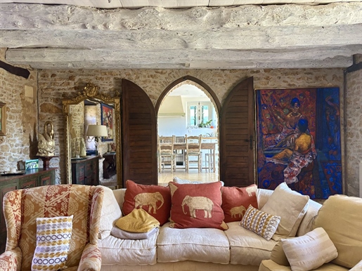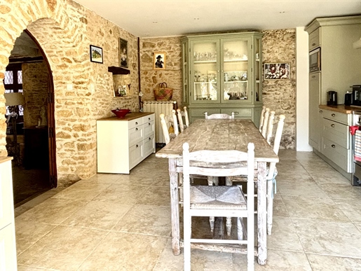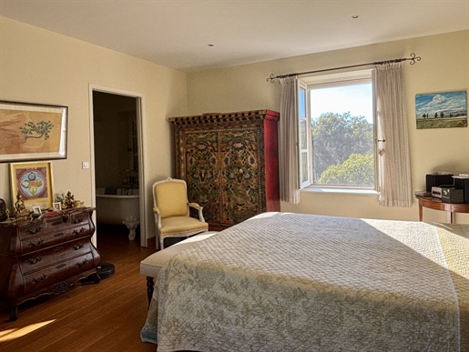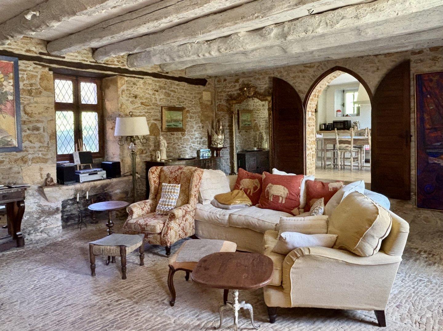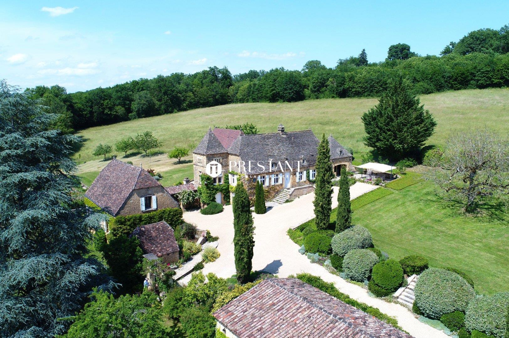 Entre Sarlat et Montignac, belle périgourdine aux toits de lauze, authentique, élevée sur caves, sur 7,6 hectares environ avec une vue semi-dominante. Sans aucune nuisance. Entrée, salon avec poêle à bois, pisé, cuisine, four à pain, dépendances. 7 à 8 chambres, 3 salles de bains / salle d'eau, garage, pool house, sauna.