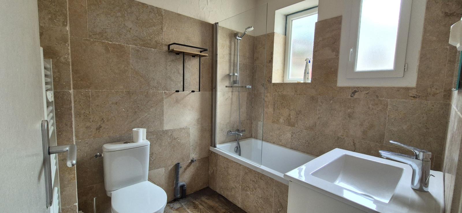 Le bien se compose d'un séjour avec climatisation, d'une cuisine séparée équipée de meuble bas, deux deux chambres dont une avec grand placard de rangement et d'une salle de bain avec WC.