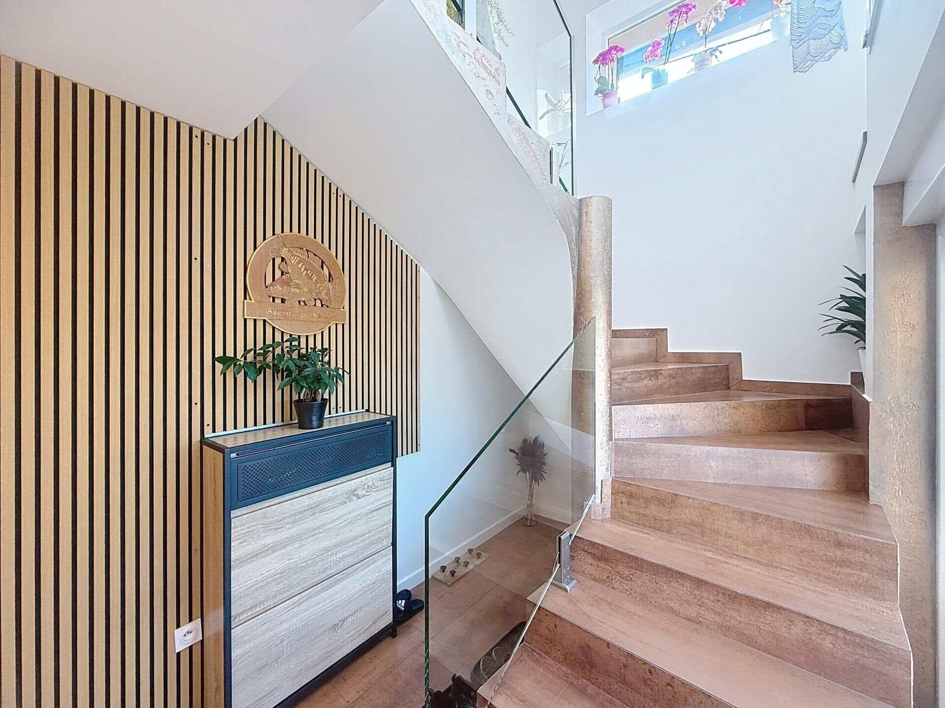 Apprieu - Dans un environnement calme, cette superbe maison entièrement rénovée en 2022 offre des prestations haut de gamme et un cadre de vie idéal. Nichée sur un terrain de 181 m², elle surplombe son environnement, garantissant calme, luminosité et ensoleillement quotidien. Dès le premier niveau, vous découvrirez trois grandes chambres, une salle de bain élégante avec douche à l'italienne et baignoire, un Wc indépendant, une spacieuse buanderie ainsi qu'un garage de 25 m², idéal pour stationner et stocker. L'étage principal est un véritable espace de vie où confort et modernité se rencontrent. Vous serez séduit par un séjour/cuisine de 55 m², baigné de lumière et conçu pour offrir une atmosphère conviviale. La cuisine ouverte, entièrement équipée, est parfaite pour recevoir. Cet étage abrite également une suite parentale composée d'une chambre de 14 m², d'un dressing sur-mesure et d'une salle de bain privée. Au dernier niveau, un bureau et un espace billard vous attendent pour des moments de détente ou de travail dans un cadre raffiné. Côté extérieur, deux terrasses exposées plein sud vous permettent de profiter pleinement des beaux jours et des repas en extérieur. Cette maison est prête à vivre,, il ne vous reste plus qu'à poser vos valises ! Côté confort et équipements, elle est dotée de radiateurs électriques, d'un poêle à granulés pour une chaleur douce et économique, ainsi que d'une Vmc hygroréglable assurant un renouvellement d'air optimal. Une attention particulière a été portée à la qualité des matériaux, aux finitions et à l'aménagement intérieur, garantissant un cadre de vie agréable et durable. Un bien rare à découvrir sans tarder ! Contactez-nous dès maintenant pour organiser une visite et laissez-vous séduire par cette maison d'exception. Les informations sur les risques auxquels ce bien est exposé sont disponibles sur le site Géorisques : Prix de vente : 299 000 € Honoraires charge vendeur Contactez votre conseiller Safti : Cindy Terrier - Ei - Agent commercial immatriculé au Rsac de Vienne sous le numéro Surface terrain : 181 m². Honoraires à la charge du Vendeur Bien En copropriété : Non Lieu : Isère (38)