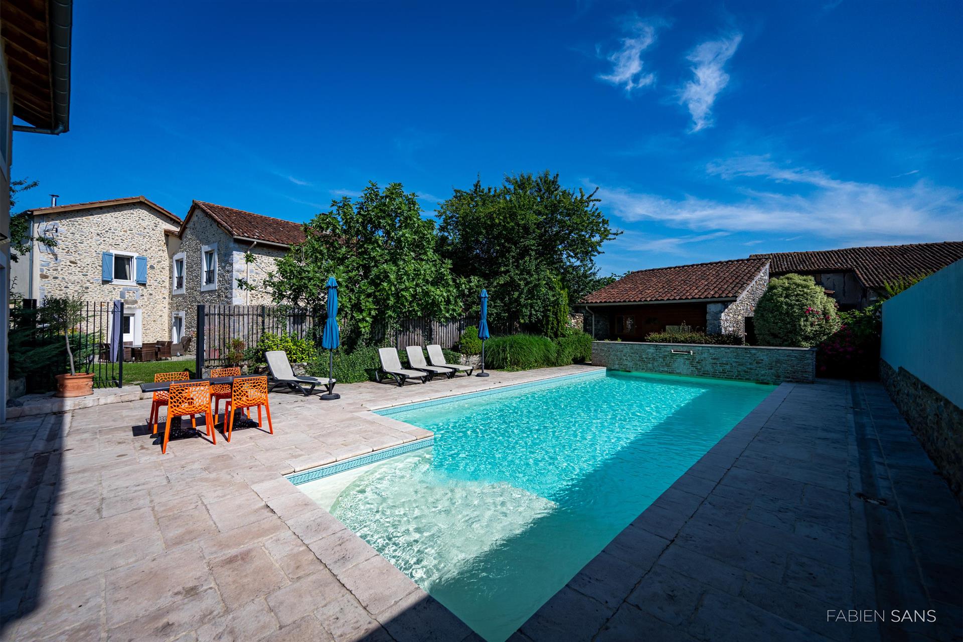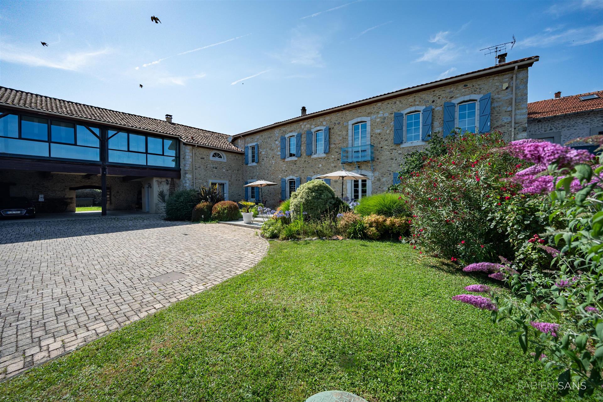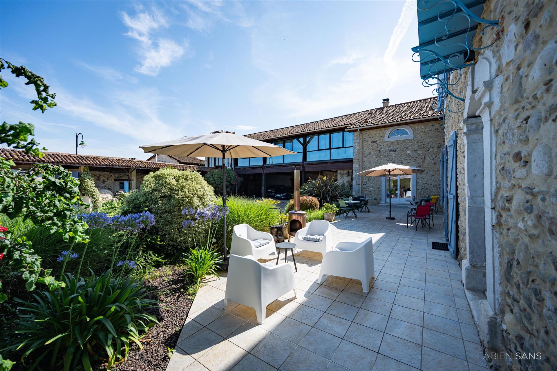 This beautiful Bed & Breakfast is for sale in Ausson, a beautiful quaint village located in the Midi-Pyrénées! On a generous plot of approx. 2,128M2, this B&B offers luxury amenities such as a swimming pool, jacuzzi, covered parking spaces and a garage. With a total living area of 625m2, the house is divided into a B&B of 505m2 and a holiday home of 120m2.